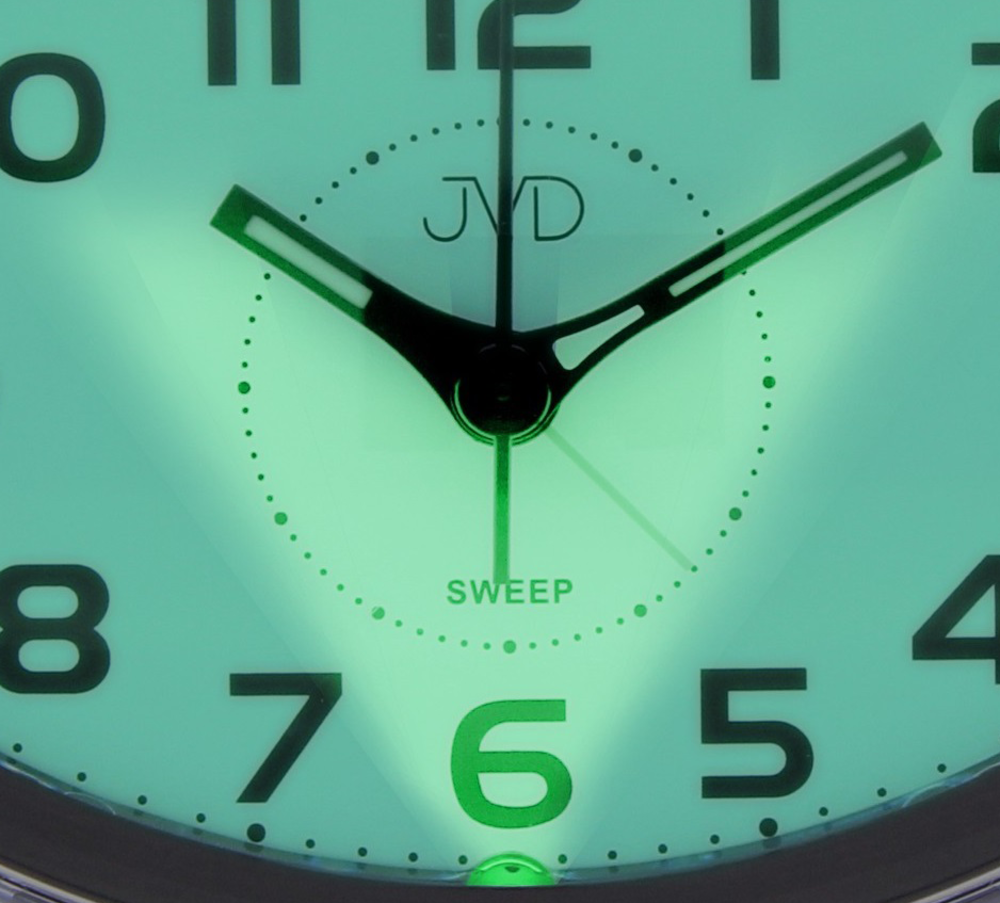 Analogový budík s tichým chodem, celoplošným podsvícením číselníku, opakovaným buzením a postupným zesilováním budíku.